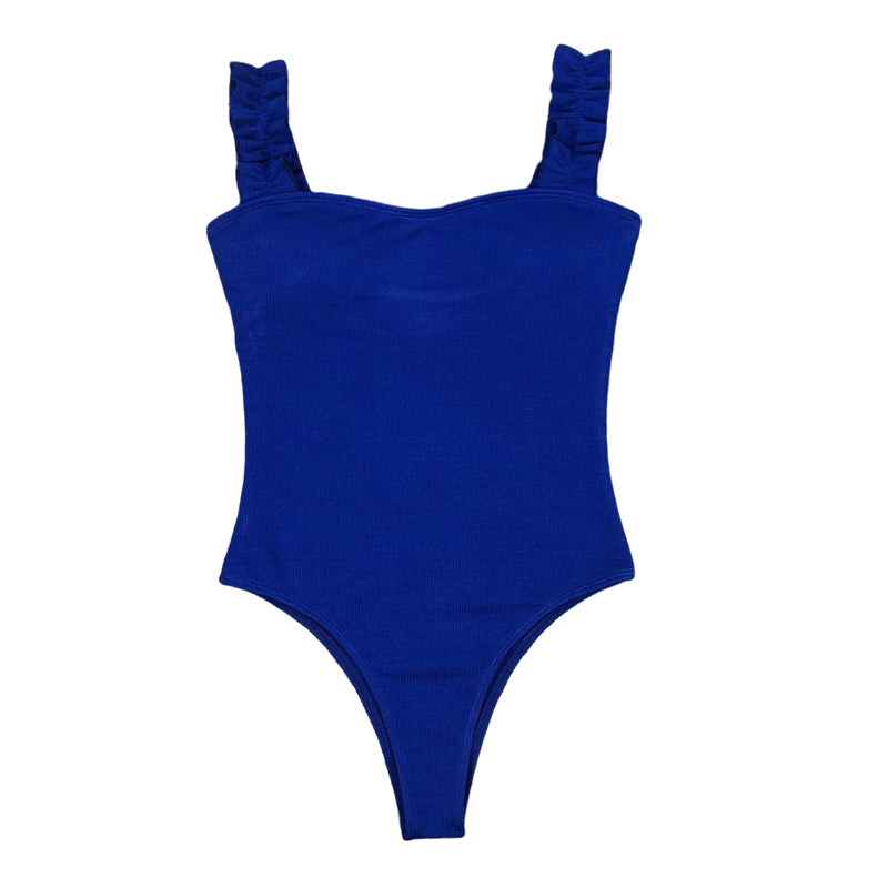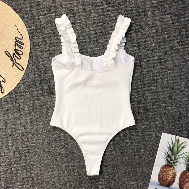 Upptäck en stilfull badsäsong med vår exklusiva baddräkt som kombinerar enkel elegans med en sexig touch. Denna baddräkt har sofistikerade volangband och finns i flera chica färger som garanterar att du känner dig säker vid poolen eller stranden.