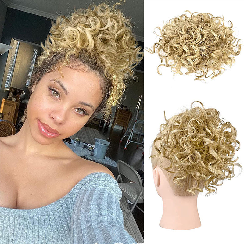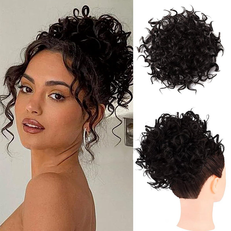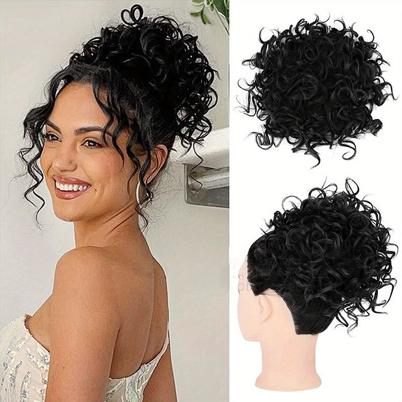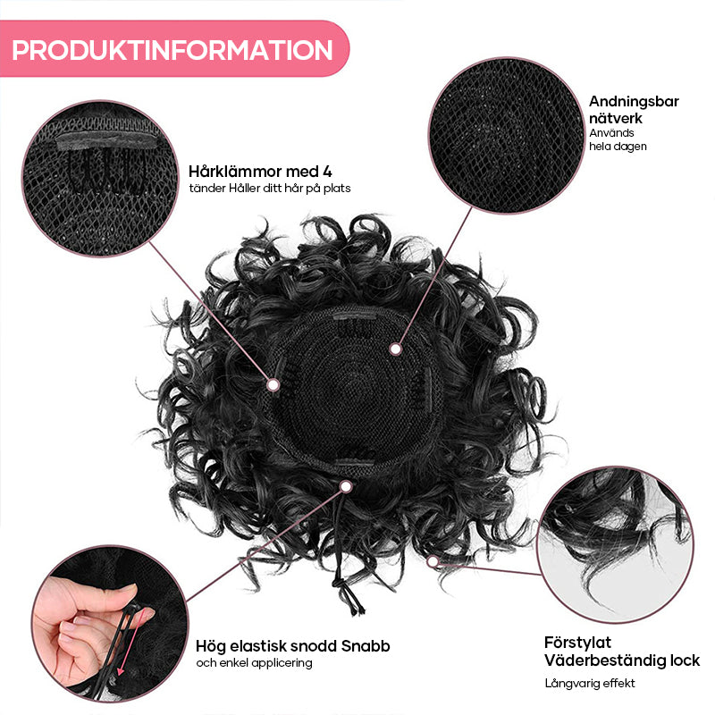 Förvandla din look omedelbart med vår elastiska dragsnöre kort lockig knut, perfekt för kvinnor som önskar en snabb och stilfull förvandling. Tillverkad av högkvalitativt syntetiskt material som efterliknar äkta hår ger denna produkt en naturlig och voluminös effekt.