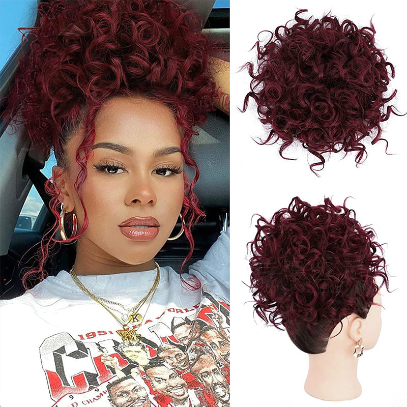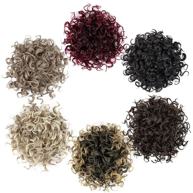 "Elastisk dragsnöre, kort lockig knut för kvinnor, syntetiskt material, naturlig volym i färger som guld och vinröd"