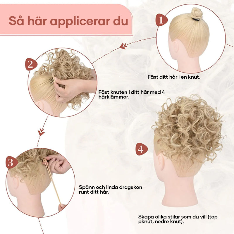 Den elastiska designen gör att du enkelt kan fästa knuten på ditt eget hår, vilket ger ett långvarigt och stabilt resultat. Oavsett om det är till vardags, för fest eller resor, erbjuder denna frisyr förändring utan krångel.