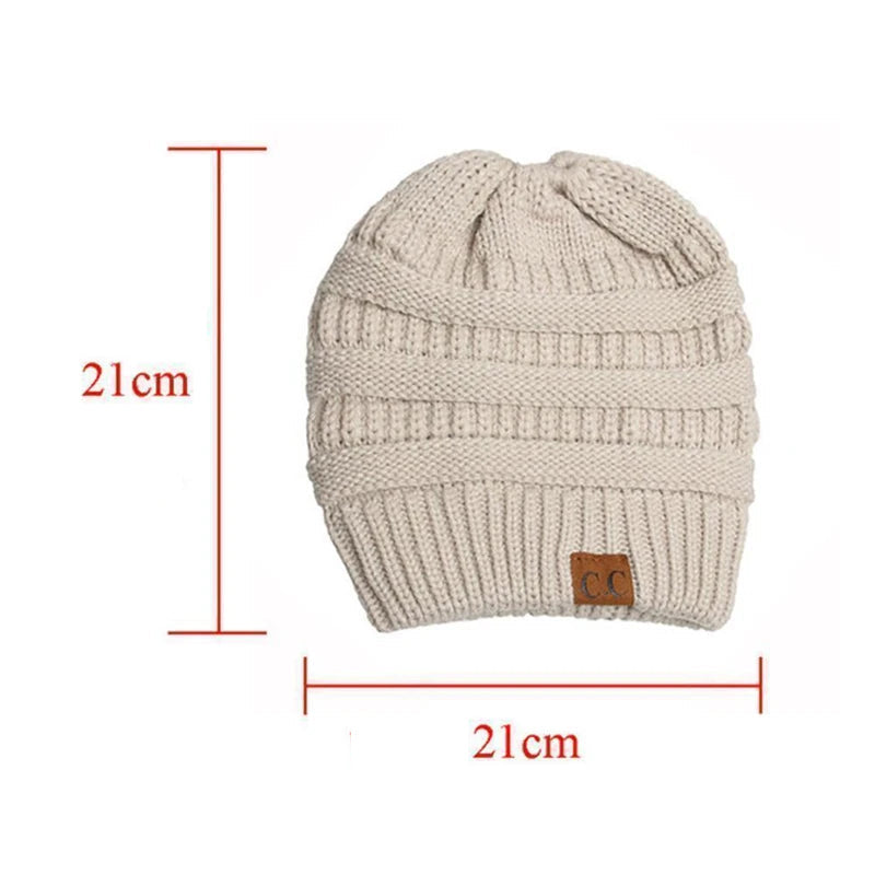 "Mjukstickad hästsvansmössa för kvinnor, akryl, med hästsvanshål, i flera färger, idealisk för vinter och casual stil."
