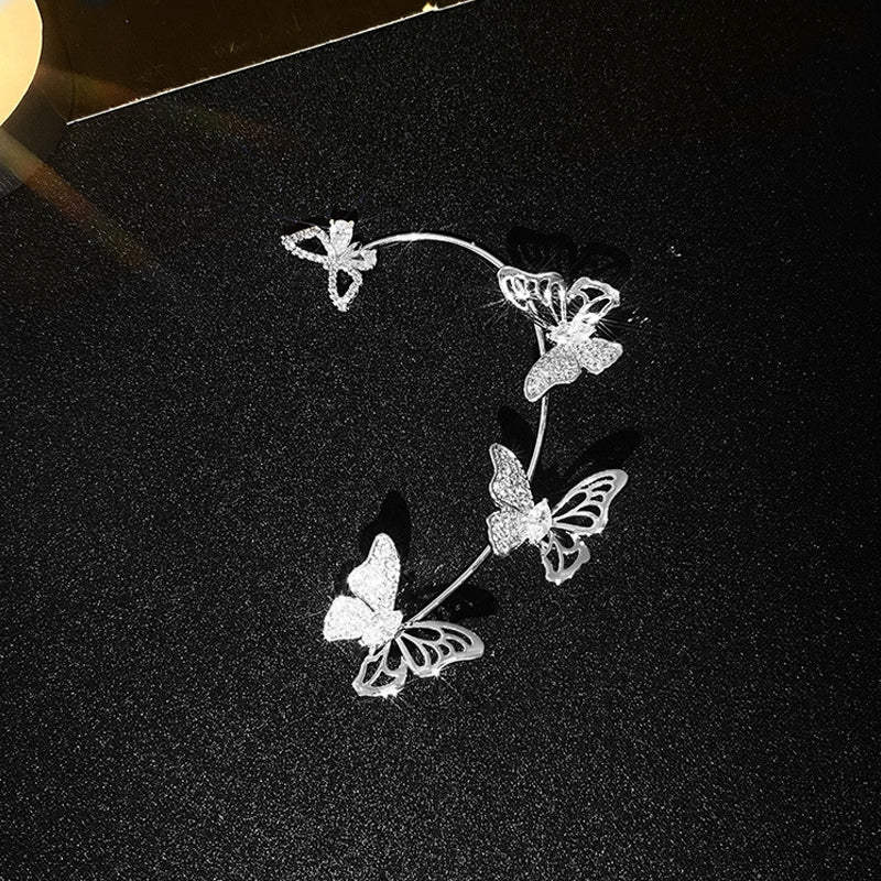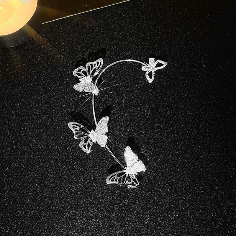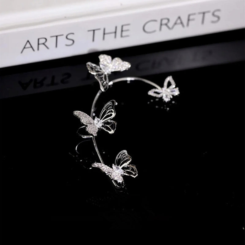Upplev elegans och frihet med dessa zirkon fjäril örhängen som smyckar ditt öra utan behov av piercing! Fjärilsdesignen, tillverkad av högkvalitativ koppar belagd med gnistrande zirkon, ger en sofistikerad touch till alla dina klädval.