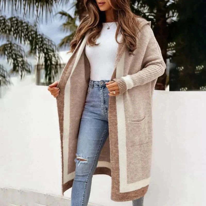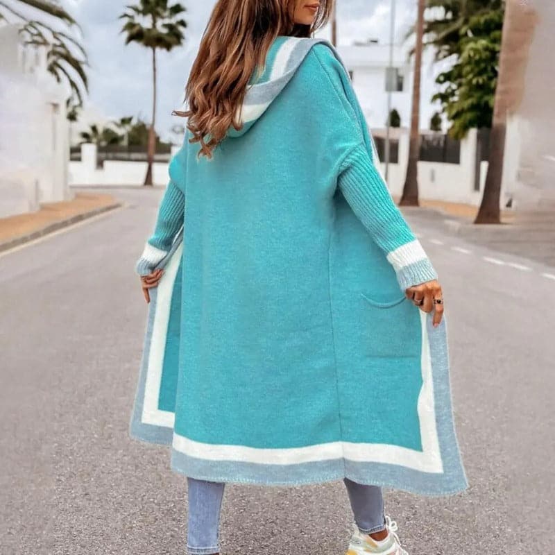 Elegant mångfärgad lång kofta med huva | dammode