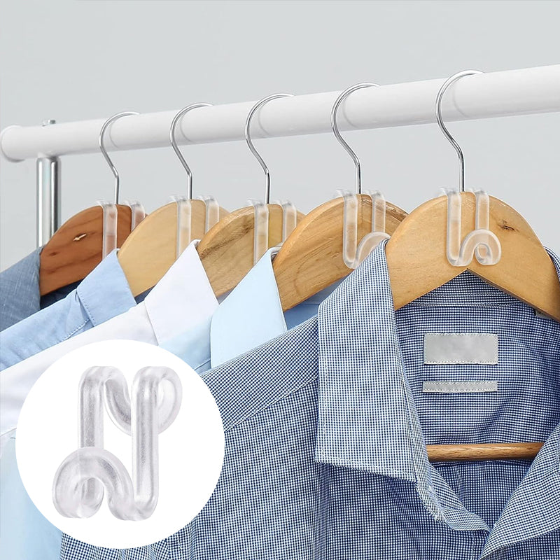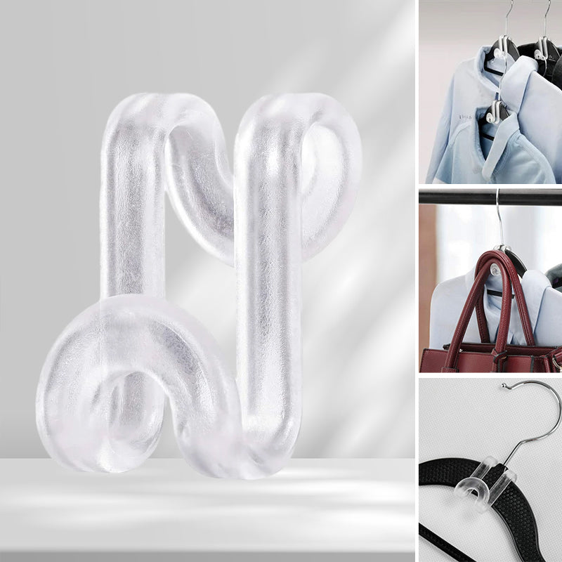 Organize your closet with style and efficiency. These smart transparent connecting hooks are a must-have for every home, making it easy and convenient to save space and keep your clothes organized.