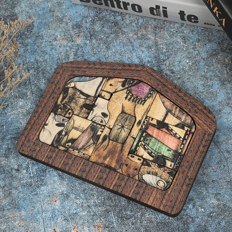 • Konstnärlig design: Det vedbrända träet och de intrikata bitarna ger pusslet en underbar visuell attraktion.