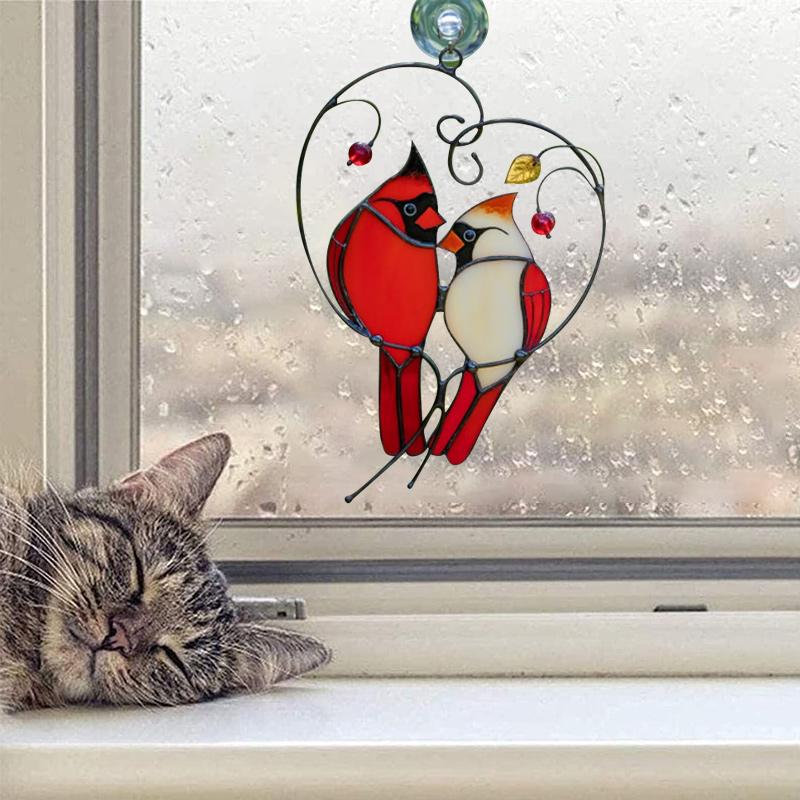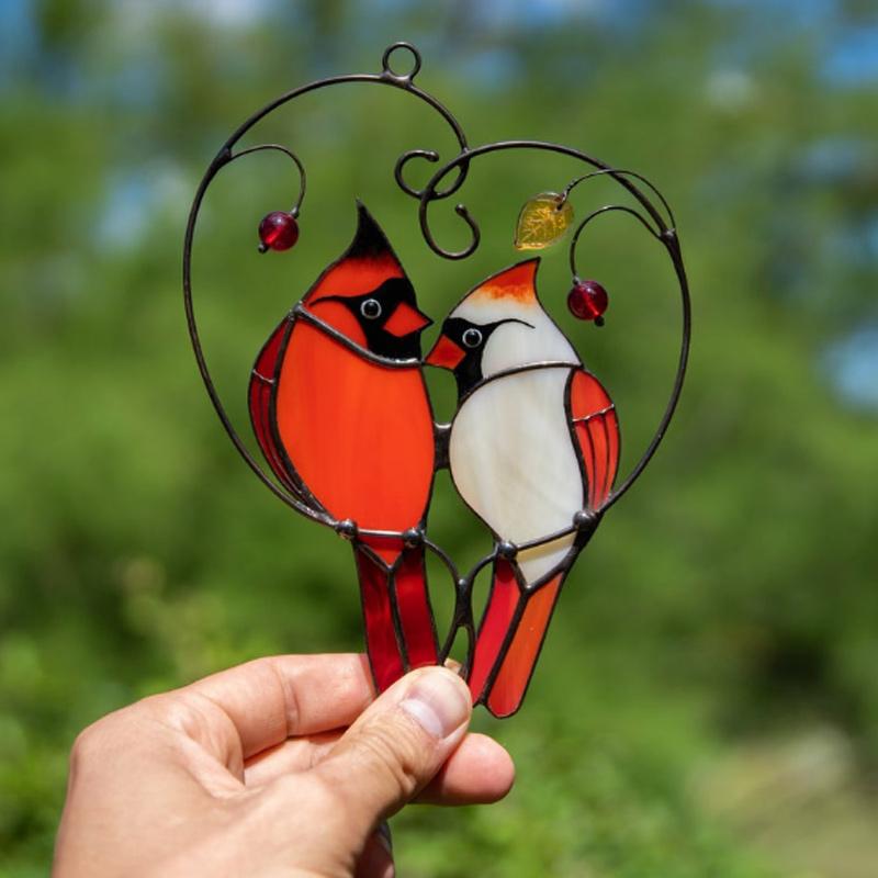 Skapa en charmig och unik atmosfär i ditt hem med denna vackra kardinalfågel fönsterdekoration. Tillverkad med noggrannhet och elegans, erbjuder denna handgjorda dekoration en färgstark skönhet som fångar ögat.