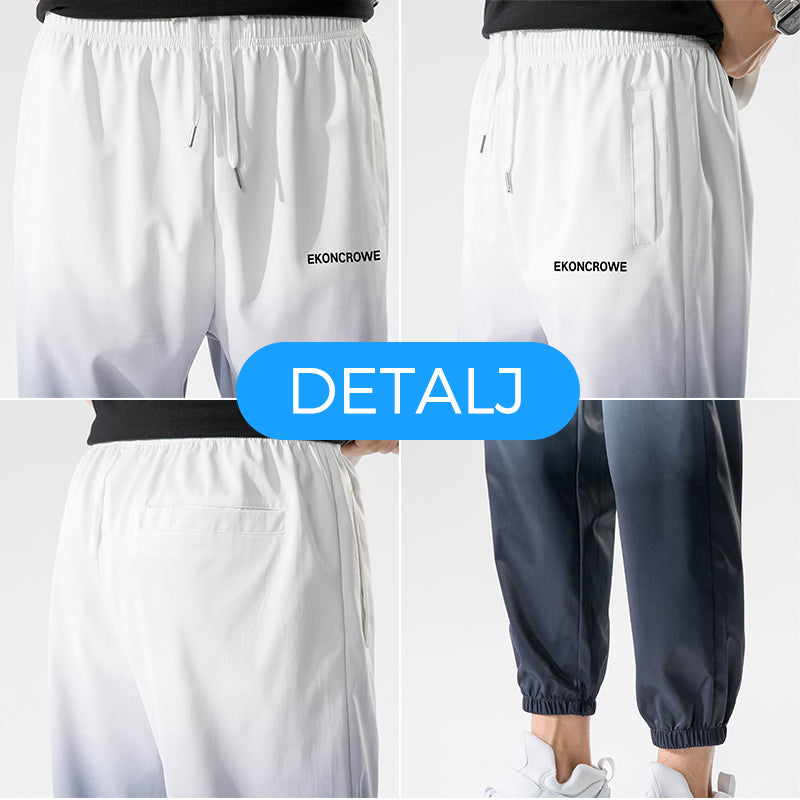 "Herr casual sommarbyxa med gradientfärg i grå, vit, blå. Lätta, bekväma och perfekta för vardag och sommar."
