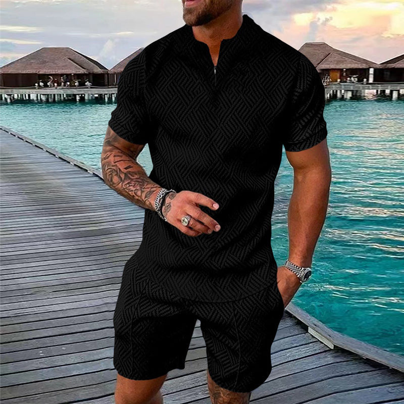 Utforska denna casual och stilfulla set med tryckt polo T-shirt och shorts. Perfekt för sommarens avslappnade stunder, designad för att erbjuda maximal komfort och stil.