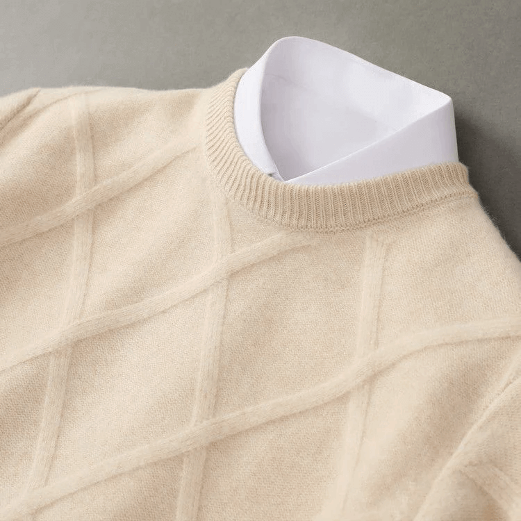 Unna dig oöverträffad lyx med denna premiumtröja i kashmir. Tillverkad av den finaste kashmirullen och spandexblandning, erbjuder den en mjuk och lyxig känsla. Det subtila argyle-stickmönstret förhöjer den tidlösa designen, vilket gör den till det perfekta valet för både vardagliga och formella tillfällen.
