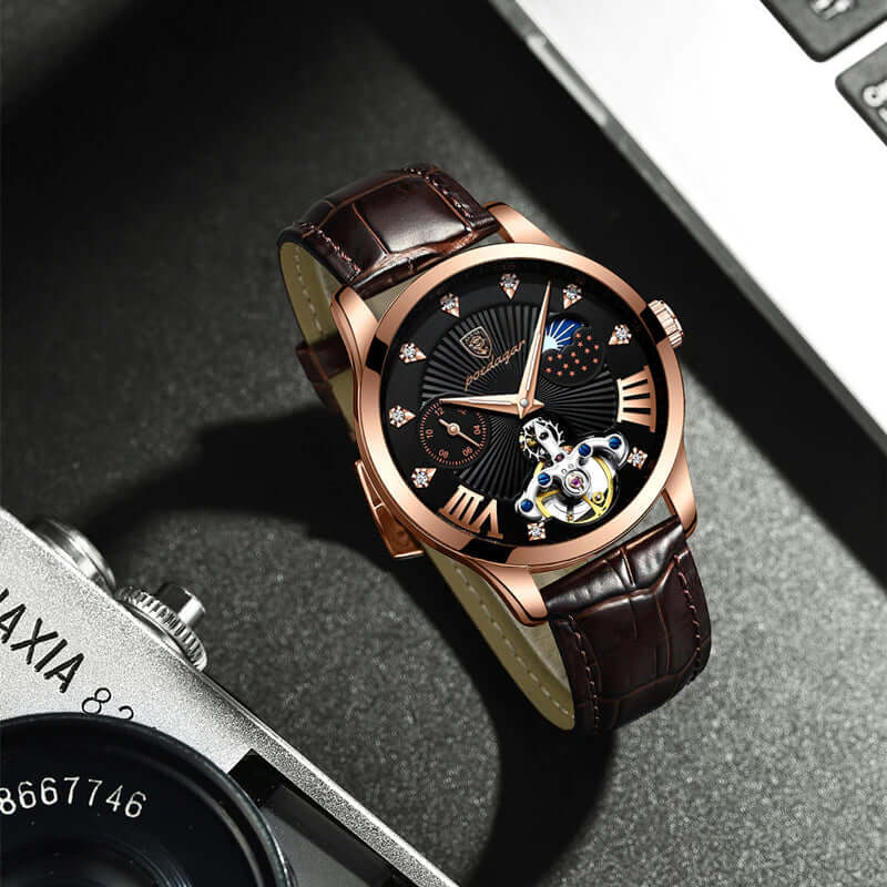 • Elegant Läderband: Ger en klassisk och sofistikerad look.