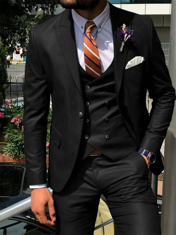 Utforska elegansen med vårt Sakarias stilfulla 3-delat herrkostymset, skapat för dagens stilmedvetna man. Detta set kombinerar den tidlösa charmen av klassisk skräddarsydd passform med moderna detaljer, vilket säkerställer att du alltid projicerar ett polerat och professionellt intryck.