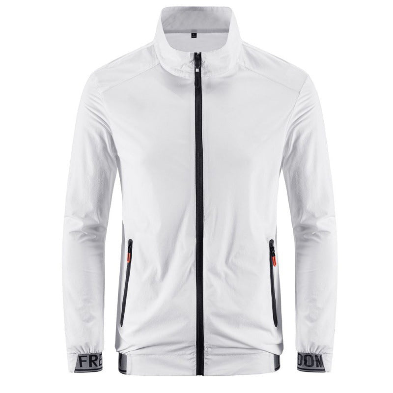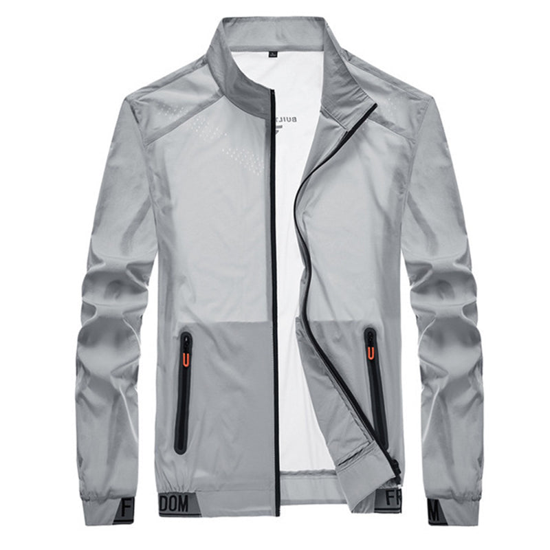 "Vattentät herrjacka med solskydd, färgmatchande design, tryckmönster, funktionell och andningsbar för alla väder."