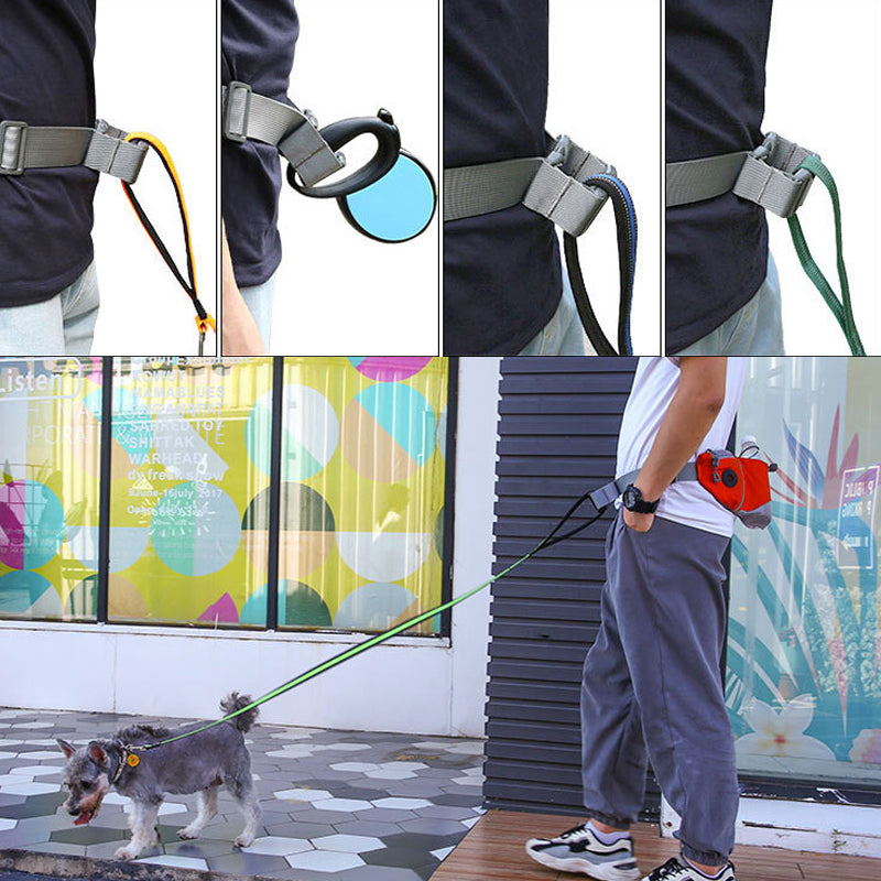 "Unisex midjeväska för hundträning, justerbar och färgglad i nylon, praktisk för aktiv livsstil och hundpromenader."