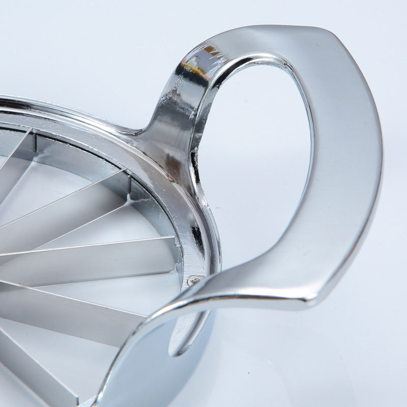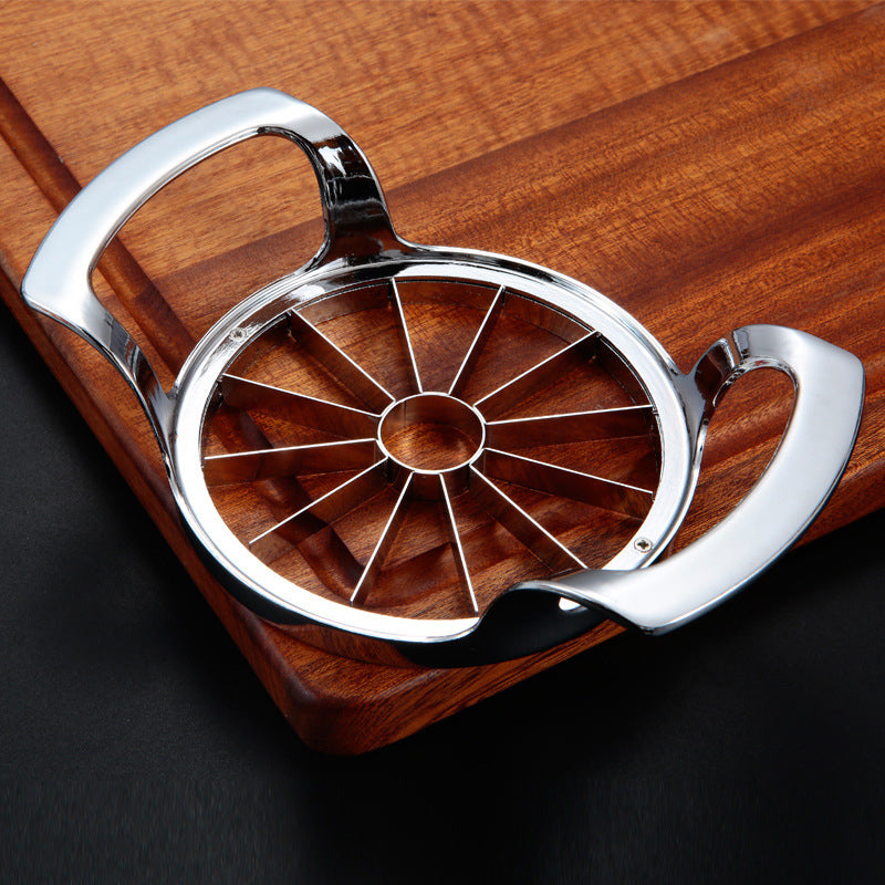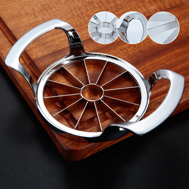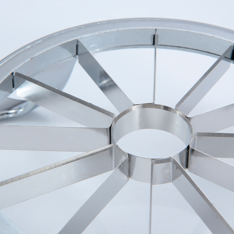 Äppelskivare i rostfritt stål skär äpplen i 12 klyftor. Robust, effektiv och lätt att rengöra, ideal för frukt.