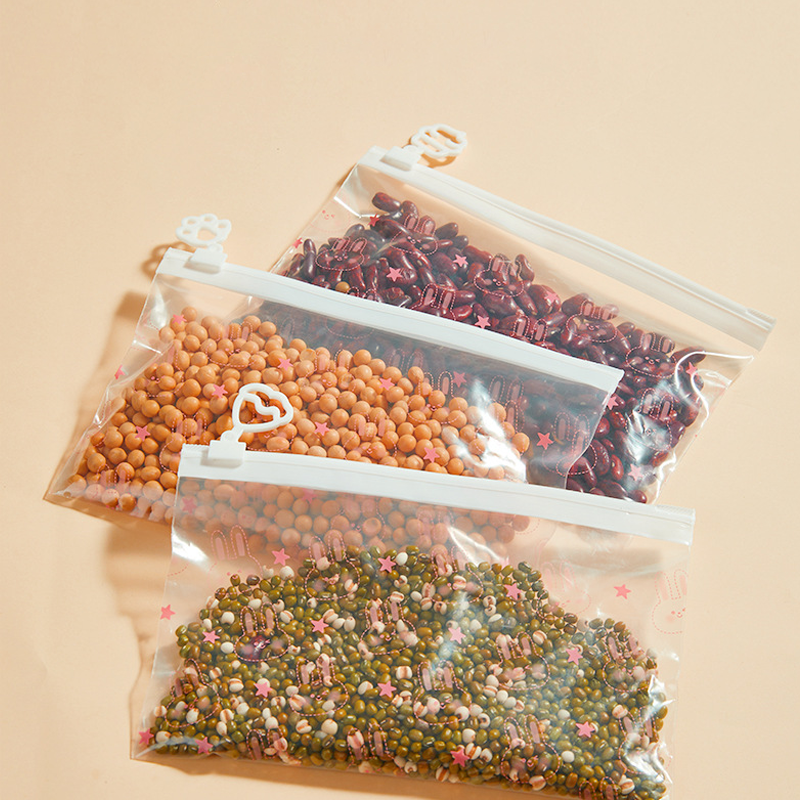 "Återanvändbar plastpåse med dragkedja för förvaring, transparent design, idealisk för kökslagring och organisering."
