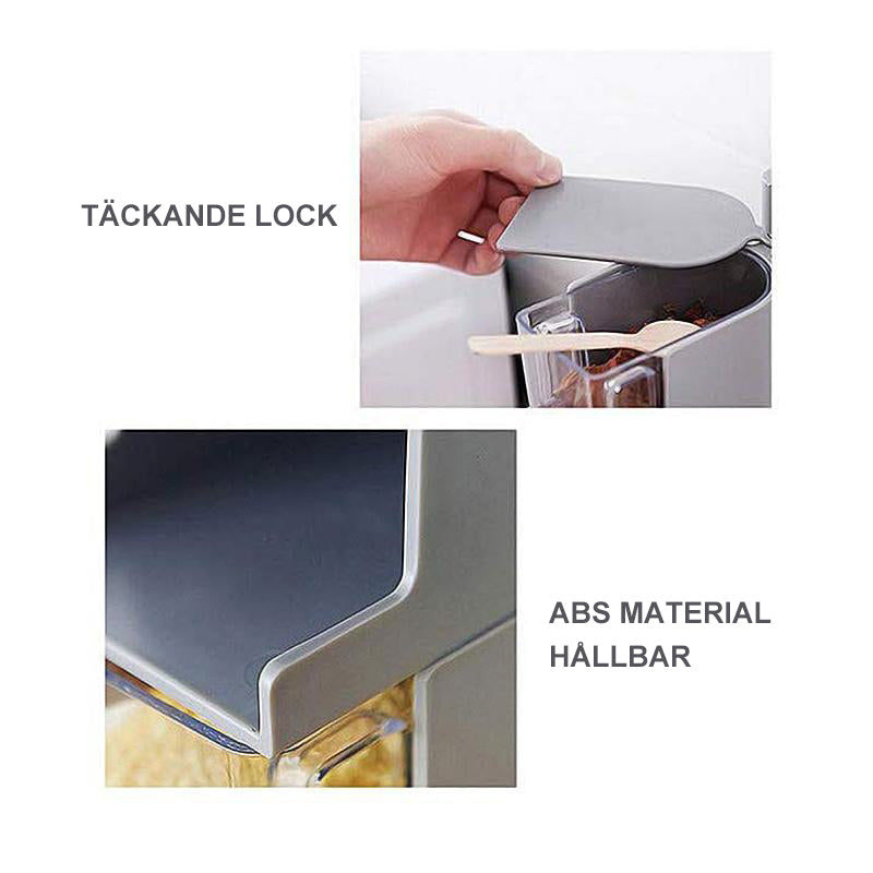 - Medföljande Skedar: Varje behållare har sin egen lilla sked, vilket hjälper till att undvika kryddblandningar.