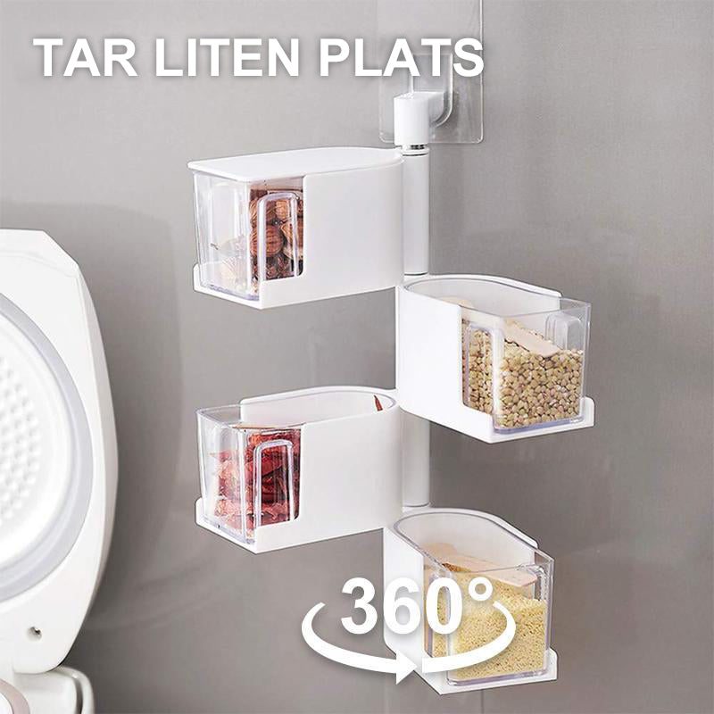 - Sparar På Utrymme: Den 360-graders roterande designen låter dig enkelt komma åt flera kryddor samtidigt, vilket maximerar ditt utrymme.