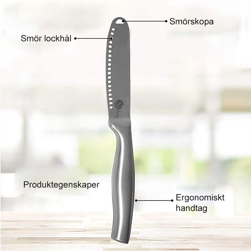 With our butter knife, you no longer have to struggle with shredded bread slices or hard butter. Its unique design with small slotted holes makes it easy to roll and distribute butter evenly. The extra wide hole is perfect for days when you want a little extra topping. Experience smooth and even butter spreading without effort.