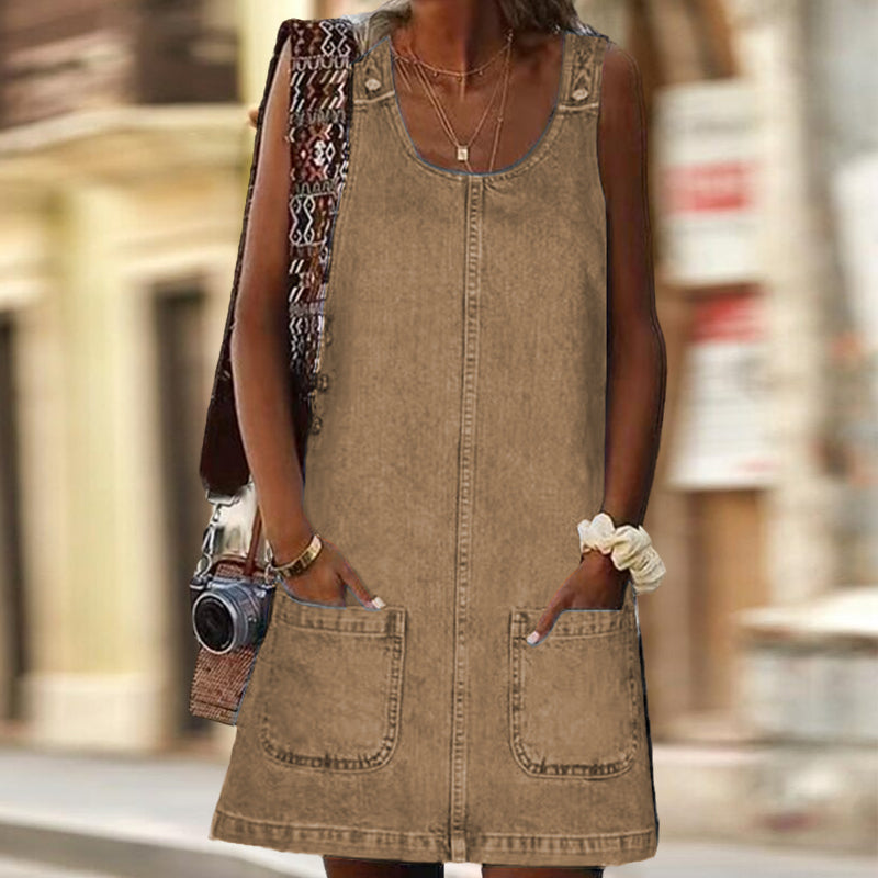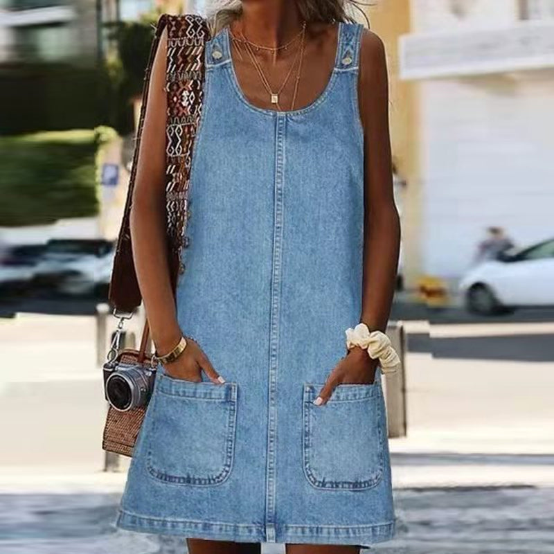 Utforska stilen och komforten med vår ärmlösa sommarklänning för kvinnor. Tillverkad av högkvalitativ bomull erbjuder denna klänning en skön och luftig passform, perfekt för varma sommardagar vid stranden eller till vardags.