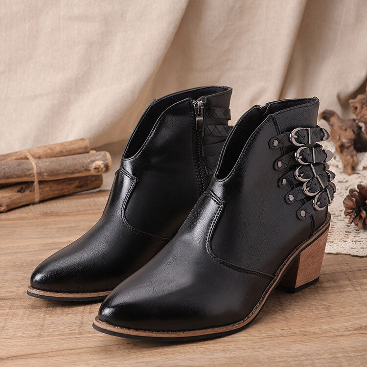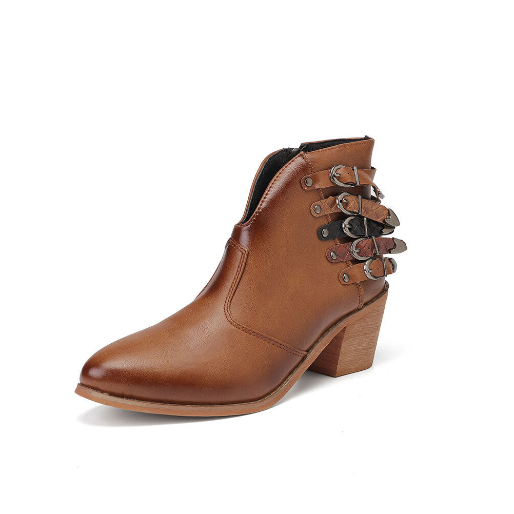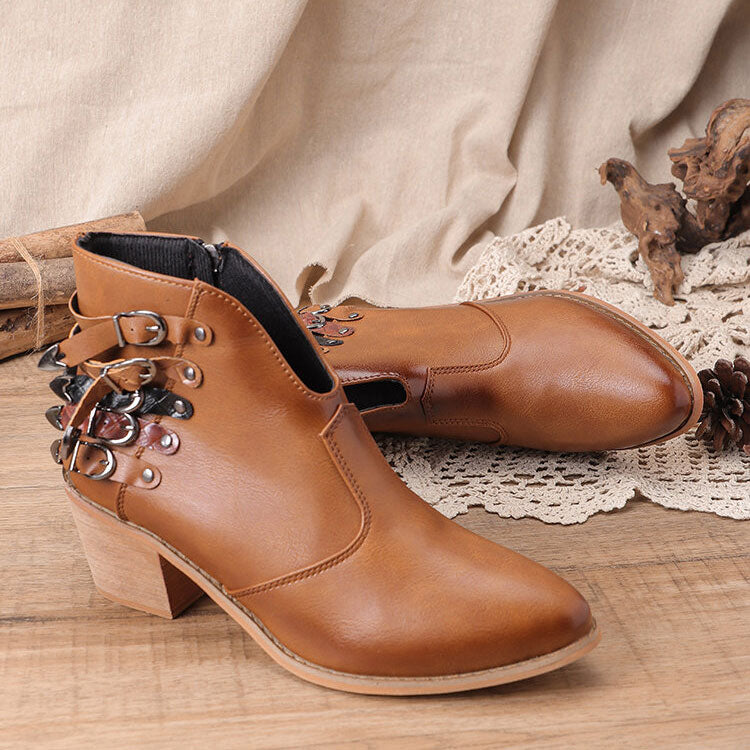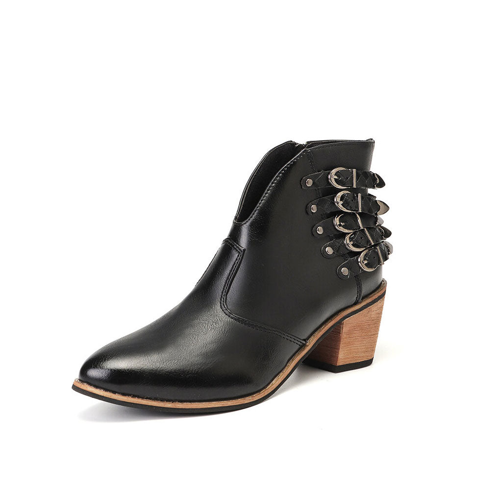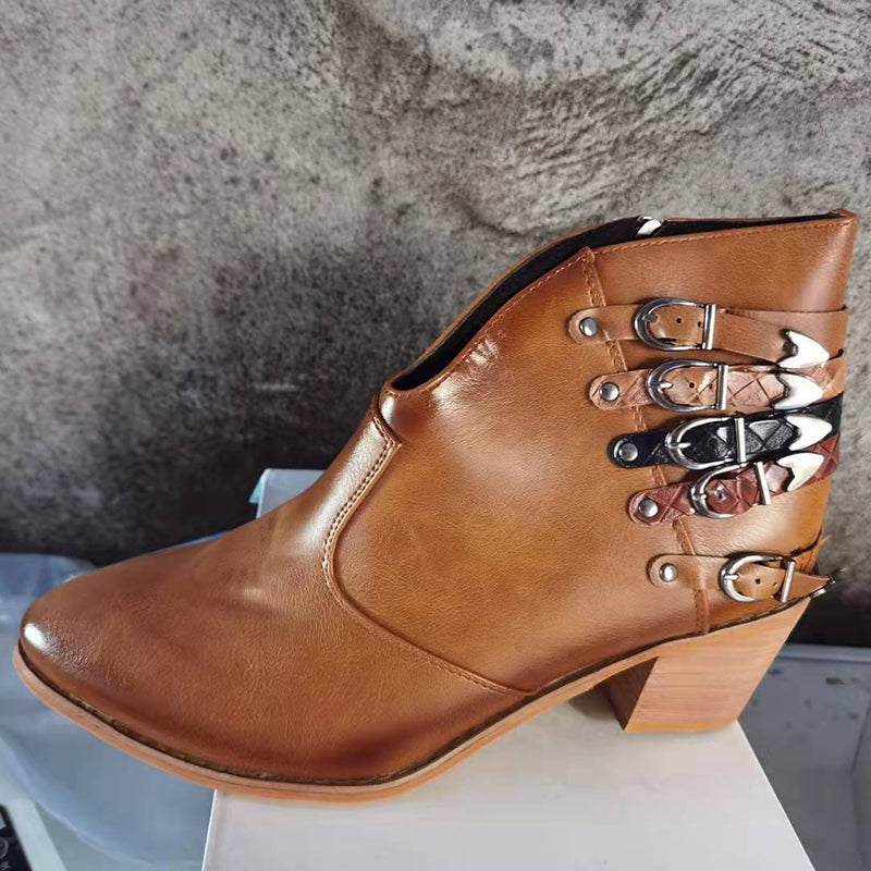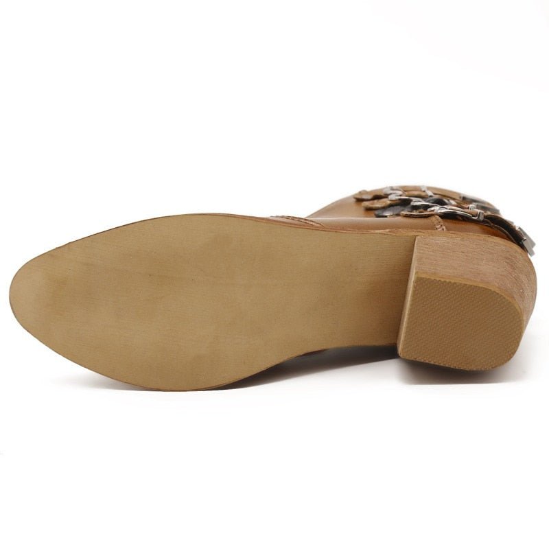 Dessa boho-stövlar är tillverkade av högkvalitativt PU-läder och gummi för att garantera hållbarhet och komfort även på våta ytor.Dessa vackra stövlar har en V-ringning och bältesspännen på sidan, vilket ger dem en särskilt dekorativ touch.Du kan kombinera dessa stövlar med en mängd olika casual outfits.