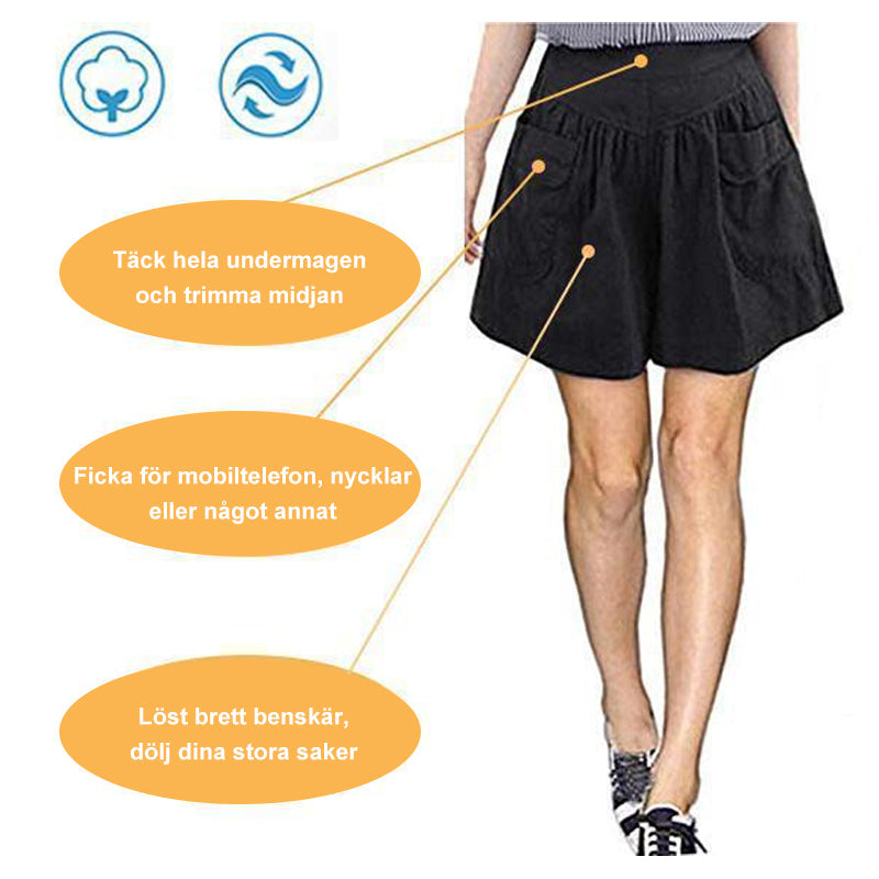 Dam mjuka vida bomullsshorts, hög midja, säkra komforten och unika fickor, lämplig för sommar och dagsaktiviteter.