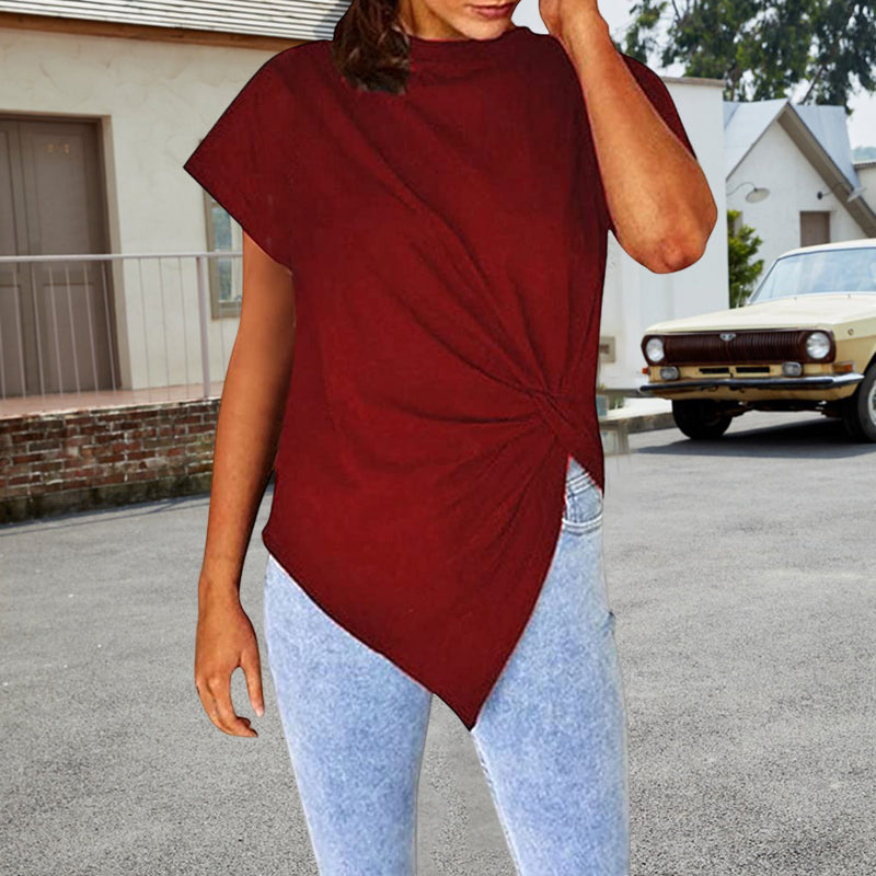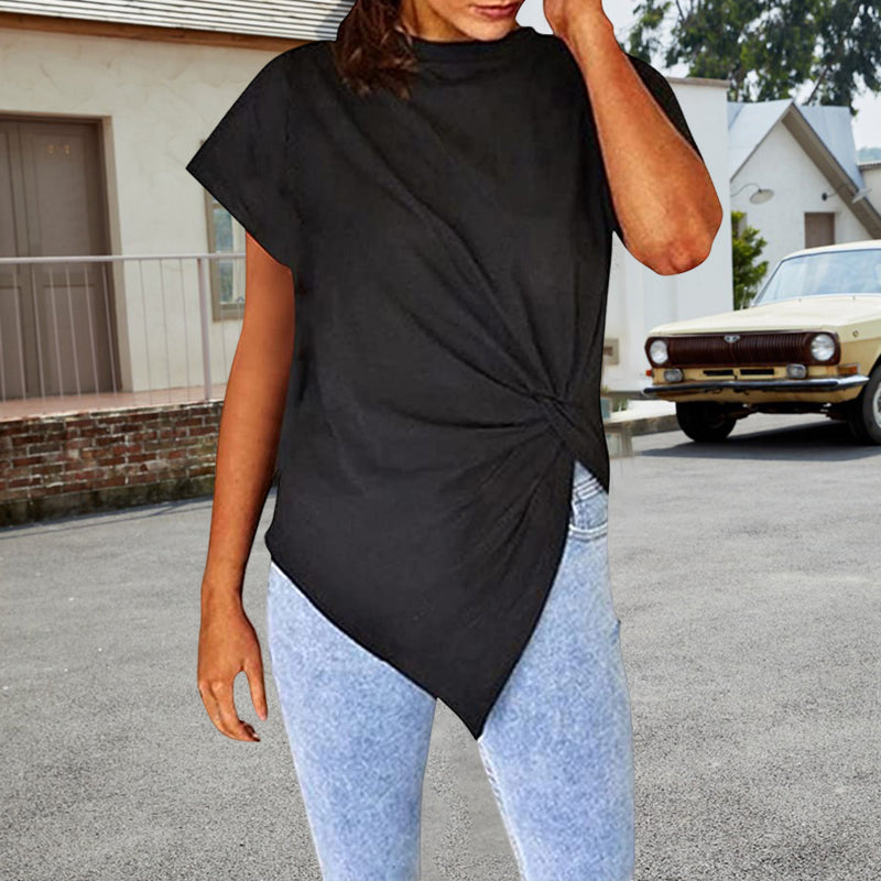 Upptäck den perfekta kombinationen av komfort och stil med vår damtröja med rund hals och knutdetalj. Detta plagg är en nödvändighet i din sommargarderob. Tillverkad av lättviktig polyester, denna t-shirt erbjuder en avslappnad passform som är idealisk för dagliga äventyr. Denna enhetliga t-shirt har en rund halsringning och en subtil knutdetalj framtill som tillför stil till din look.