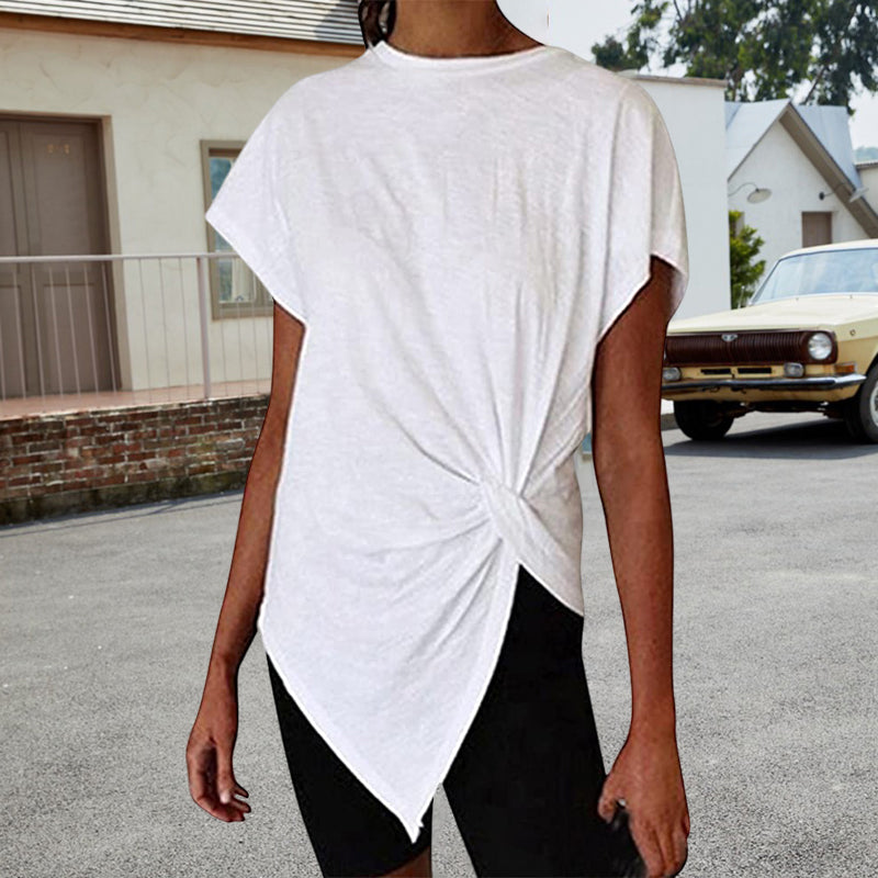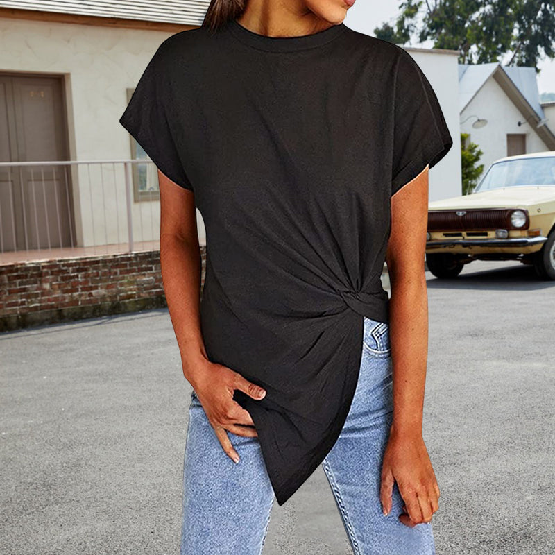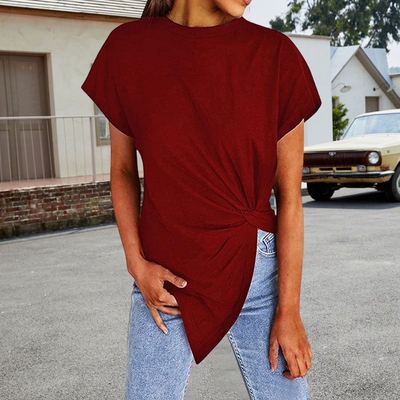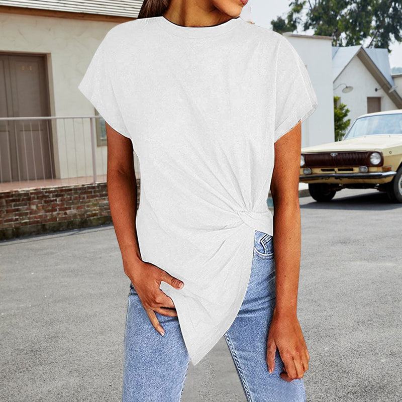 Dam Rundhalsad T-shirt med Knut Detalj - Somrig Bekvämlighet