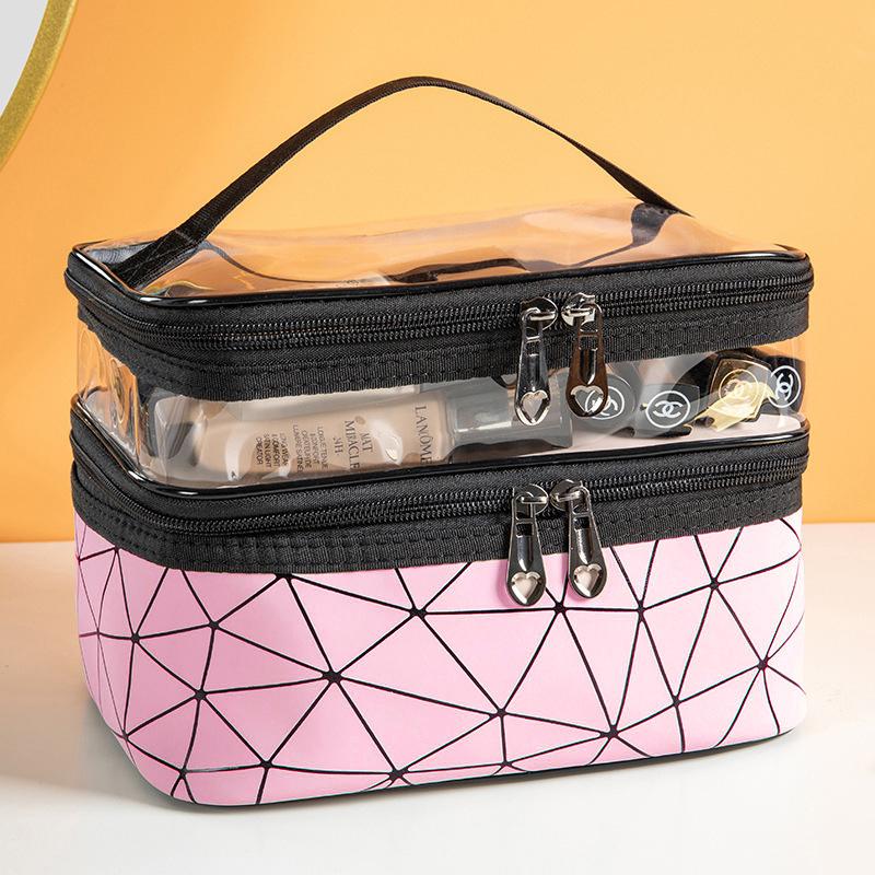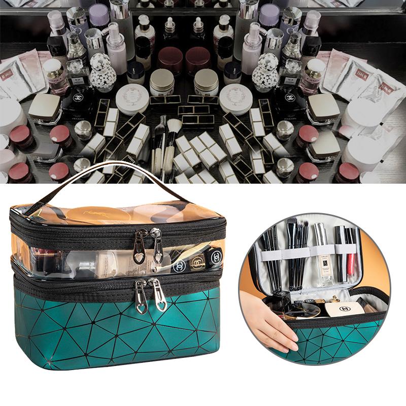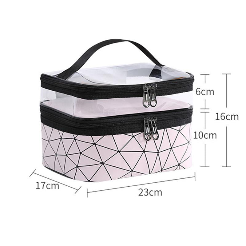 "Elegant och vattentät dubbellager kosmetikväska för damer, transparent och med handrem, perfekt organisering och bärbarhet."