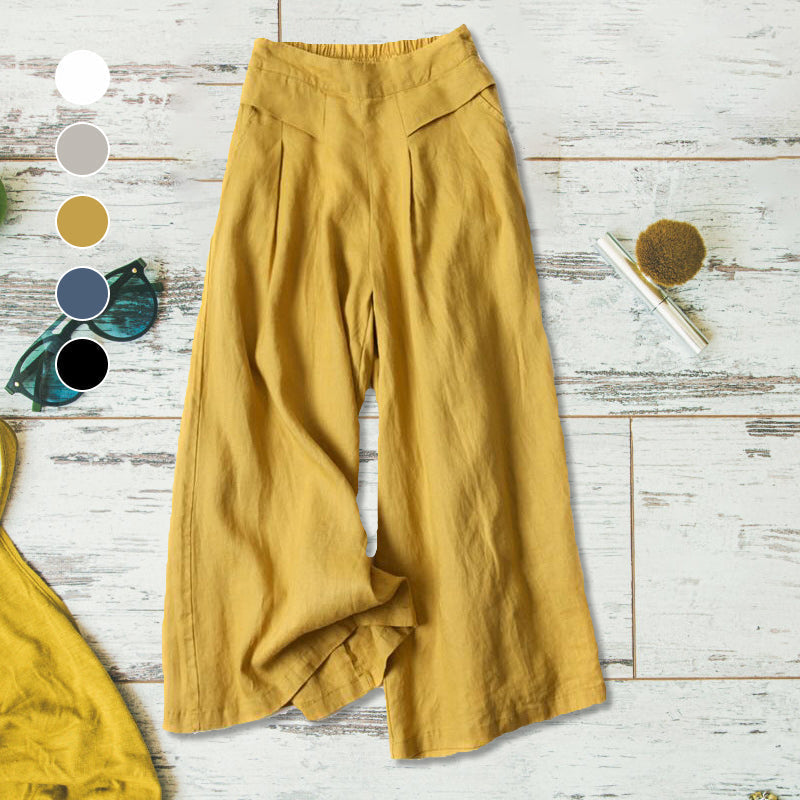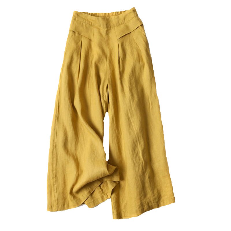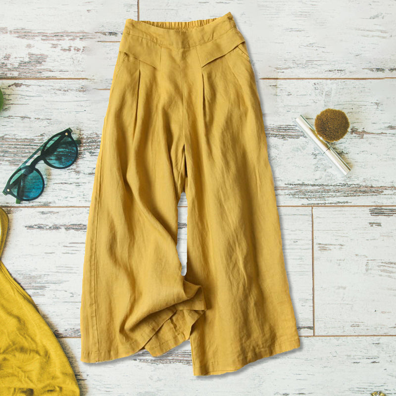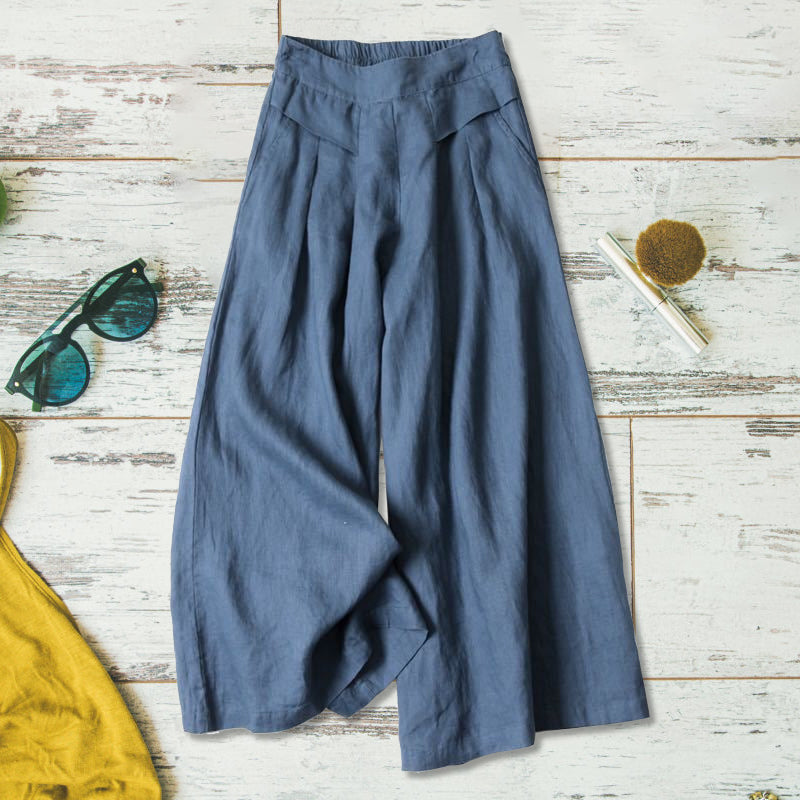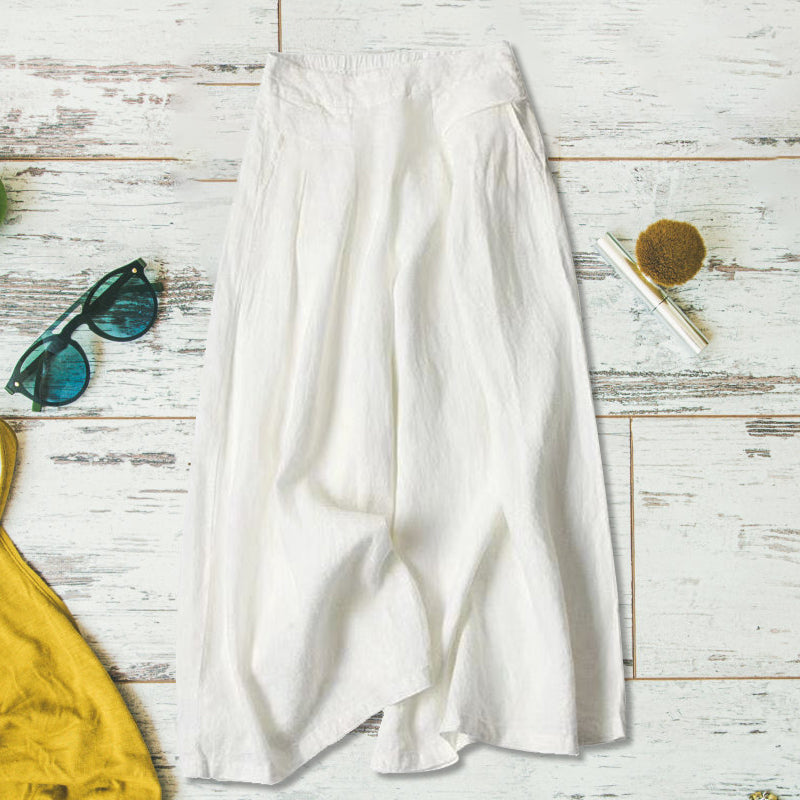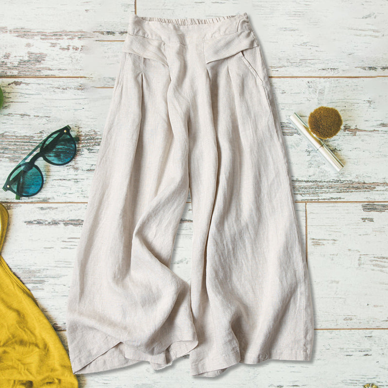 "Lätta bomullslinnebyxor för damer, avslappnad passform, ljus färg, idealiska för sommarvardag och stil."