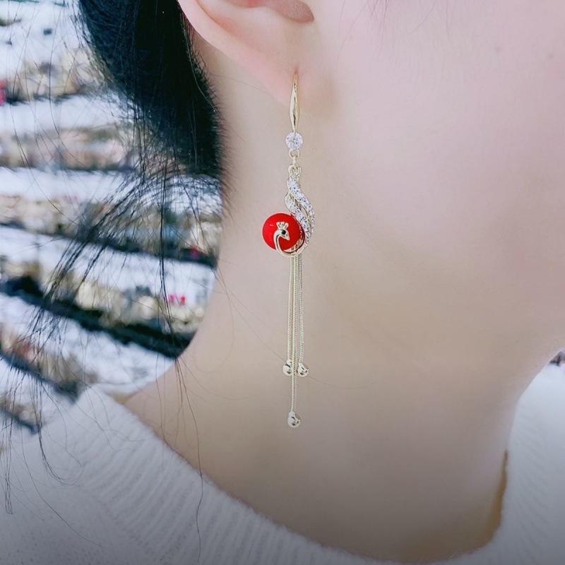 Upplev tidlös elegans med våra damer påfågelörhängen som kommer i två distinkta färger: blå och röd. Dessa örhängen är noggrant utformade med detaljerade konstgjorda påfågelfjädrar och är perfekta för att ge din look en touch av glamour.