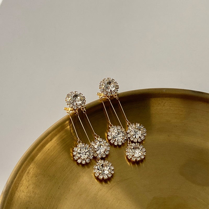 Ladies Zircon Round Petal Earrings in Elegant Design