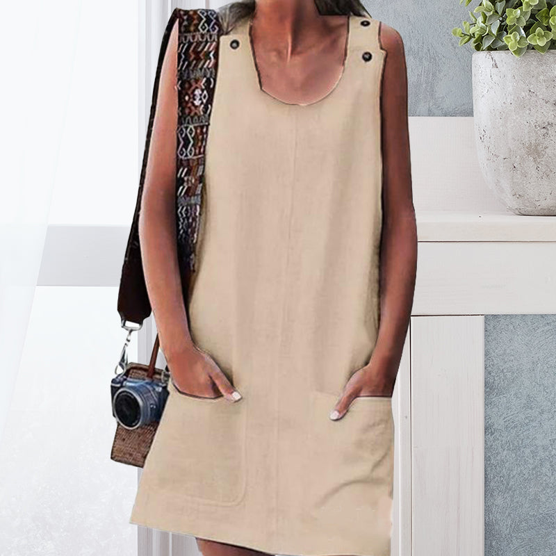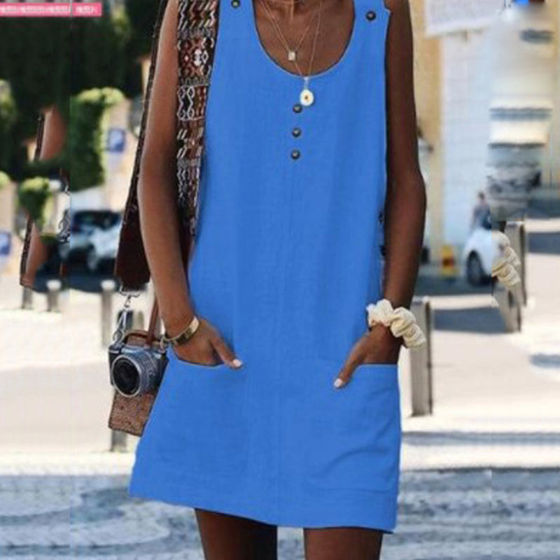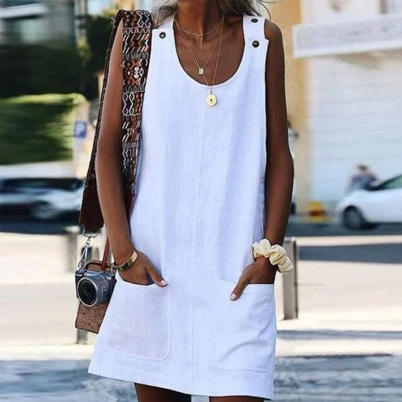 - Rund halsringning och ärmlös, idealisk för varma dagar.