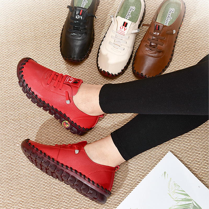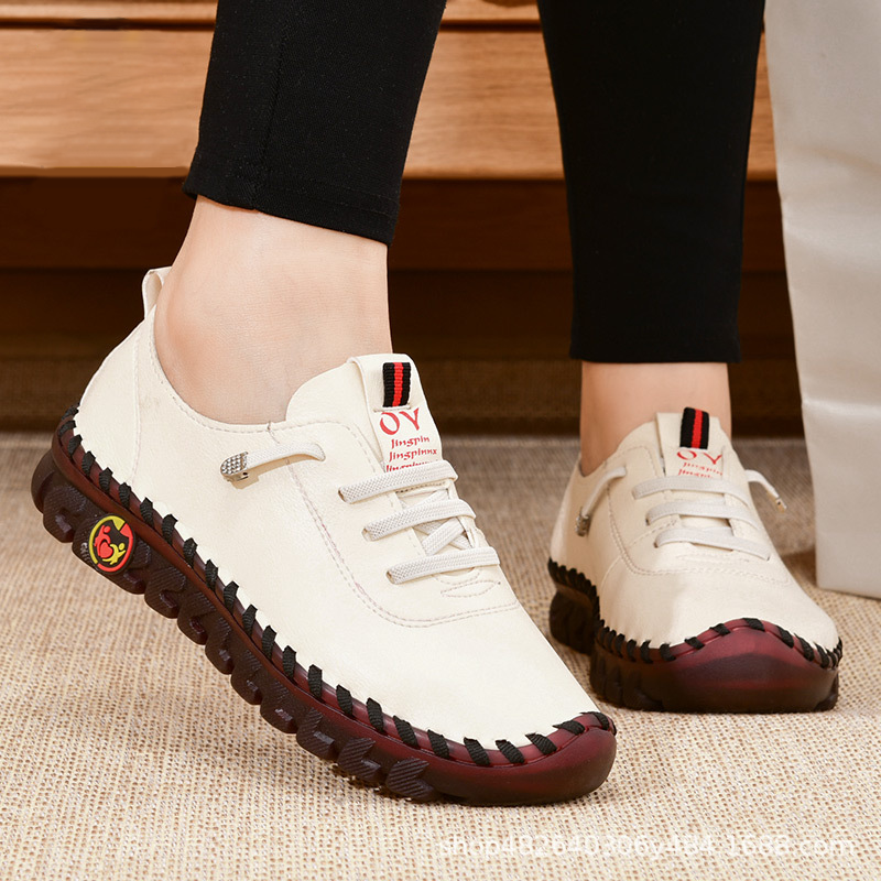 "Damskor i mjuk kohud med halkfri gummisula, andningsbar design, eleganta slip-on för komfort och stil."