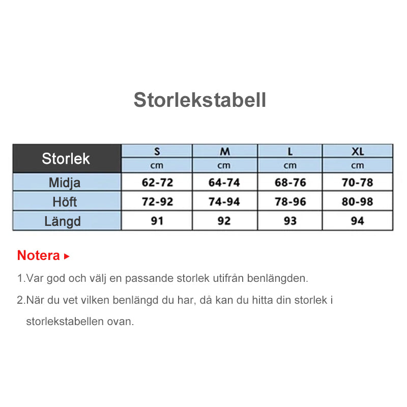 • Tjockt tyg med hög midja som döljer oönskade linjer