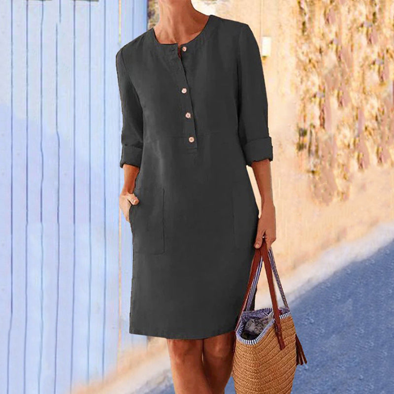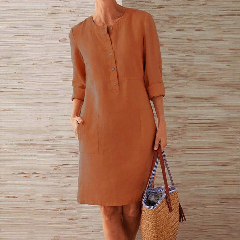 "Elegant dam A-linjeklänning, sommarfärger, smickrande skärning, mjuk bomull-linne, för både vardag och fest"