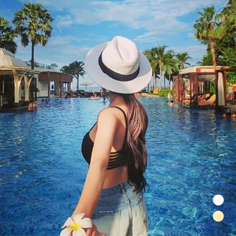Elegant Dam Solhatt med Stor Brätte - Naturlig Halm