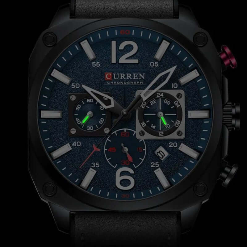 Denna klocka är mer än bara ett tillbehör – det är ett statement. Med ett slitstarkt vattentätt fodral är den designad för att motstå daglig användning och oväntade stänk. Den inbyggda datumvisningen ger ett praktiskt element så att du alltid är punktlig och organiserad.
