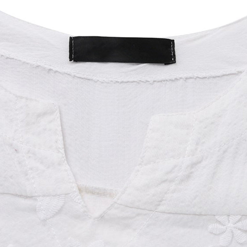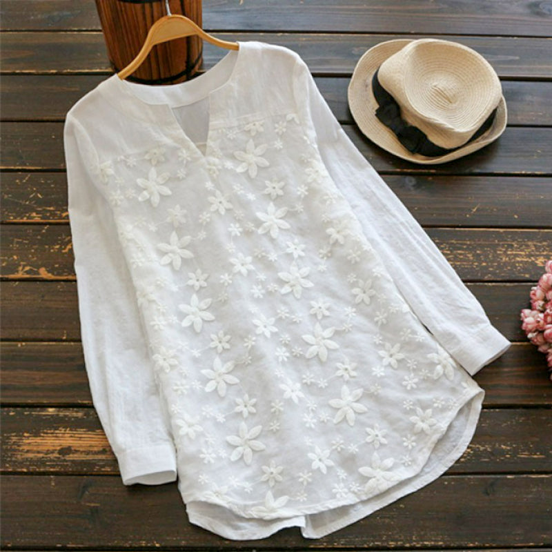 Elegant Långärmad Damtop i Spetsbroderad Bomull