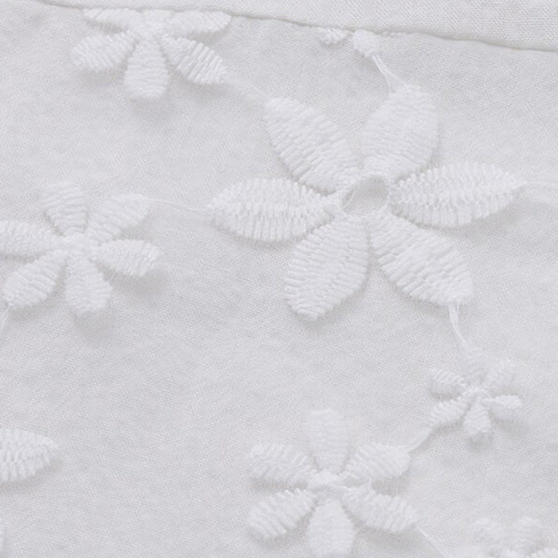 Elegant långärmad damtop i spetsbroderad bomull, vit, mjuk textur, feminin och sofistikerad design för alla tillfällen.