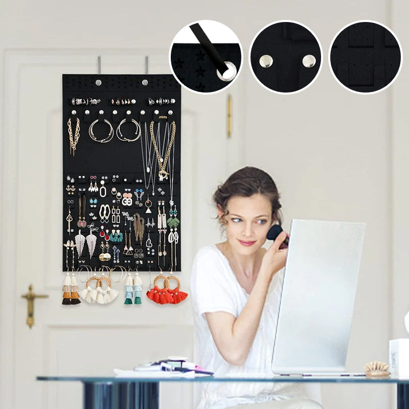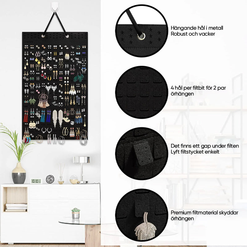 Organisera dina smycken med stil och praktisk funktionalitet med denna filthängande smyckeorganisatör. Perfekt för alla som vill hålla sina smycken organiserade och lättillgängliga. Med en elegant design och överlägsen kvalitet är denna organisatör den perfekta lösningen för dina smycken.