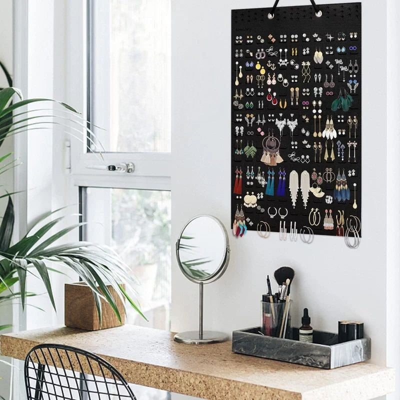 • Stor lagringskapacitet för 300 par örhängen och extra krokar för halsband.