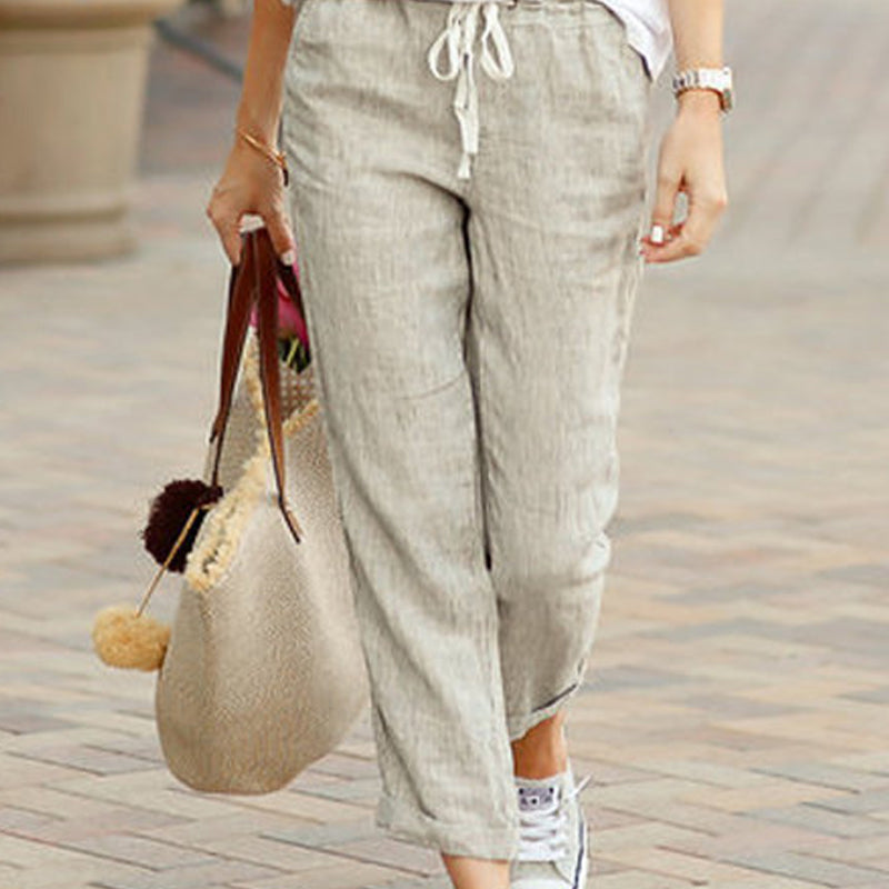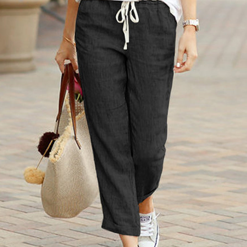 Herr Fritidsbyxor i Bomull och Linne med Snörning