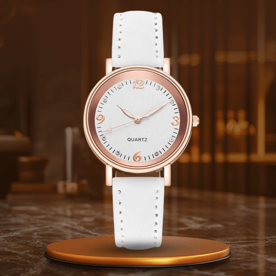 Denna klassiska läderbandsklocka är mer än bara en tidmätare - den är ett uttryck för sofistikering och charm. Designad för att passa alla tillfällen, från vardagliga utflykter till formella evenemang, kombinerar denna klocka den tidlösa skönheten hos ett läderband med precisionen hos ett kvartsurverk. Dess eleganta design och mångsidiga utseende gör den till den perfekta följeslagaren för personer som vill vara både moderiktiga och punktliga.