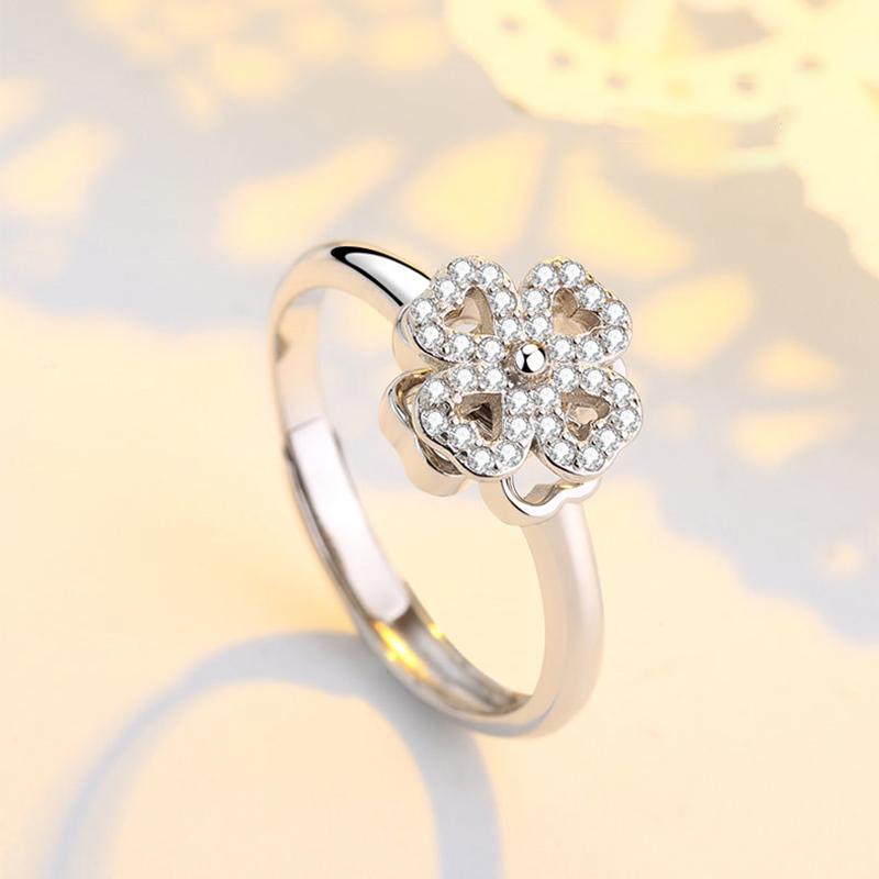 Kvinners Roterande Fyrklöver Ring i Silver eller Guld