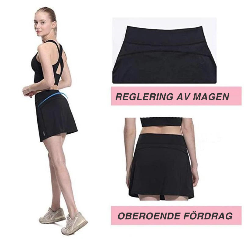 Upptäck våra stilfulla och funktionella kjolshorts med hög midja, perfekta för kvinnor som vill kombinera mode med bekvämlighet. Dessa kjolshorts är designade för att förhindra lårskav och erbjuder en andningsbar lösning för dina dagliga aktiviteter.