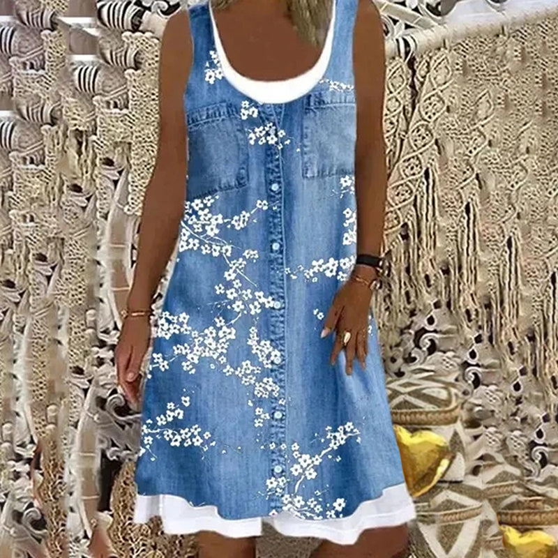 "Kvinnors avslappnad klänning, rund ringning, lös passform, flera mönster, perfekt för vardag och speciella tillfällen."