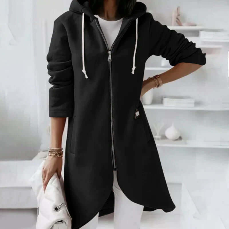 Långärmad huvtröja med dragkedja för kvinnor
