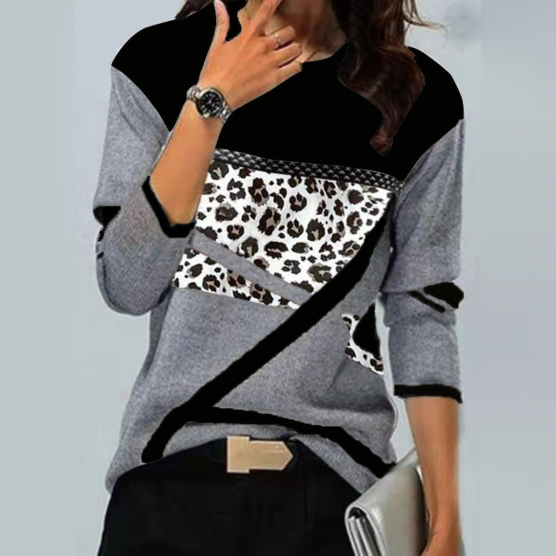 Långärmad Rundhalsad T-shirt med Kontrasttryck för Damer