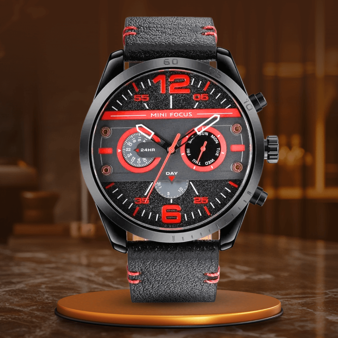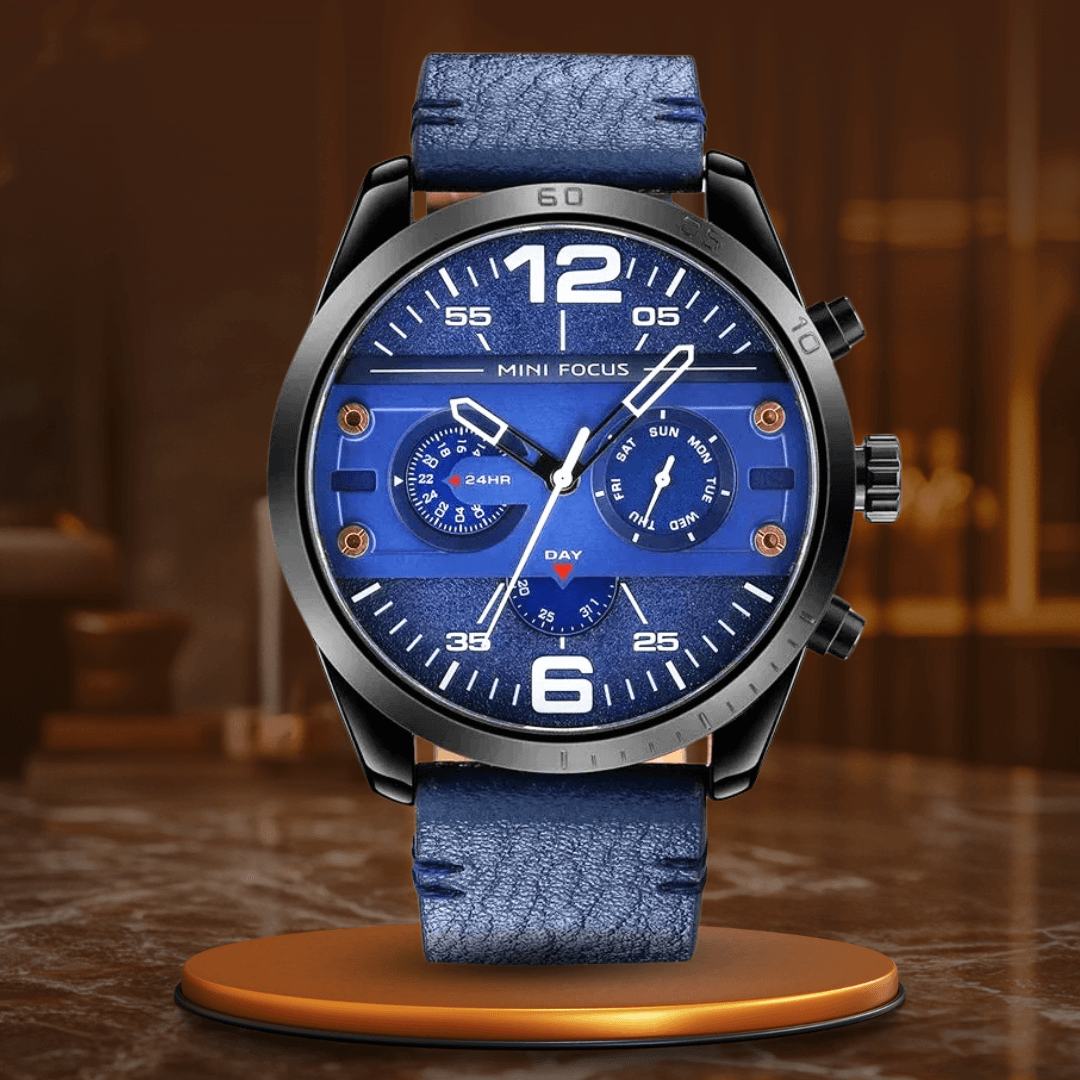 Denna fantastiska klocka ser inte bara bra ut, utan är full av funktioner som passar din livsstil. Det smala läderbandet ger komfort, medan den robusta konstruktionen säkerställer att den tål kraven från daglig användning. Kronograf-funktionen låter dig hålla exakt tid, och den vattentåliga konstruktionen gör den idealisk för alla väder eller tillfällen. Höj din stil och njut av oöverträffad funktionalitet med denna lyxiga och praktiska klocka.