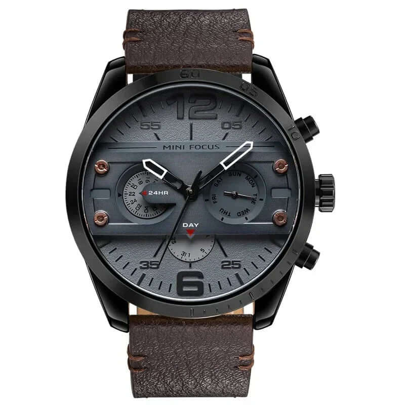 Snygg Kvartskronograf Sportklocka med Läderband